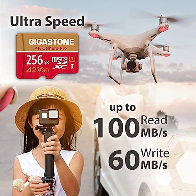 [5-Yrs Free Data Recovery] Gigastone 256GB Micro SD Card, 4K Video Recording for GoPro, Action Camera, DJI, Drone, Nintendo-Switch, R/W up to 100/60 MB/s MicroSDXC Memory Card UHS-I U3 A2 V30 C10