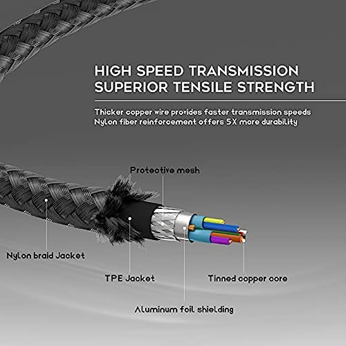 【Ultra-durable Material】DESTEK link cable is made of tinned copper and covered with high-quality nylon fiber, it has a diameter of 0.27inch, which gives it good flexibility, lightweight, resistant to stretching and abrasion, not tangle easily stored.