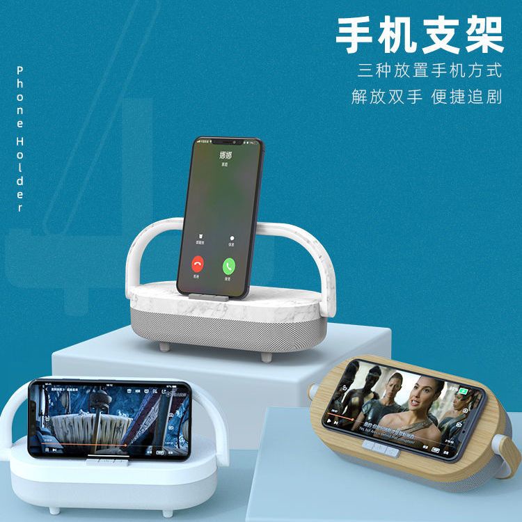 Mini Bluetooth Speaker Multifunctional Wireless Charger Speaker with Alarm Clock and Color Lights Fast Charging Speaker