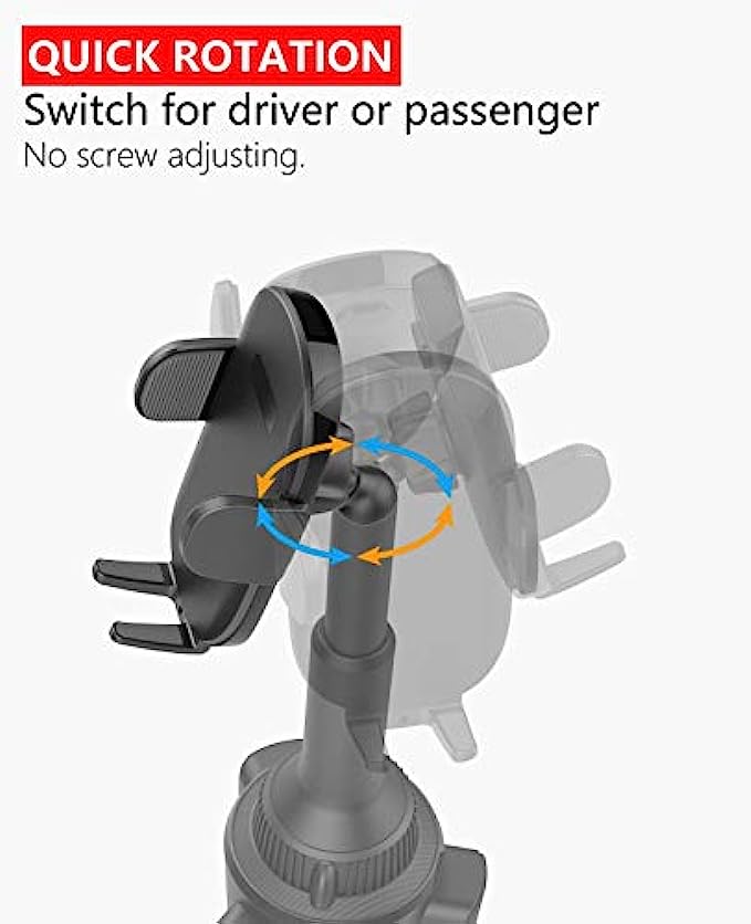 • No Blind Sides: Thanks to a rotatable neck, swivel your device quickly and simply at any time to your optimal viewing angle, no more reinstalling the cup phone holder to rotate it to a sweet spot. Tilt, rotate, or swivel easily to adjust your device with the phone holder either in landscape or vertical viewing angle.