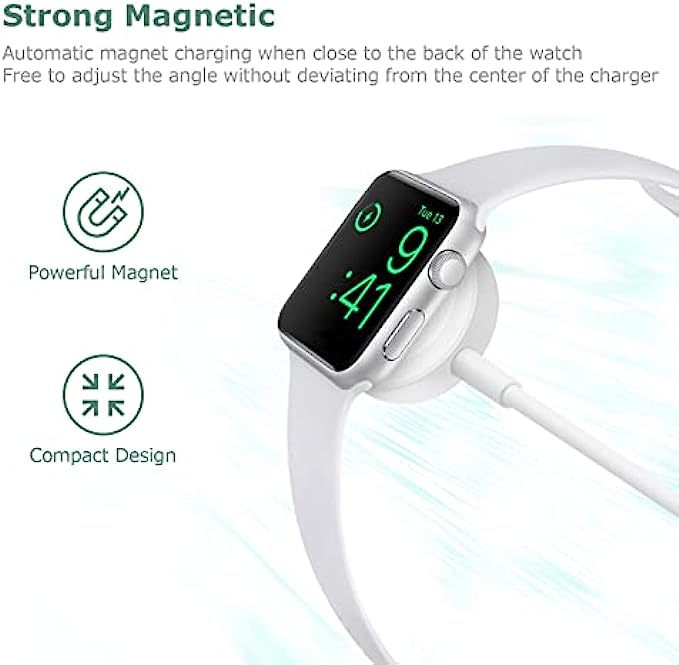 【Upgrade Material】The watch charger cable is made of high quality materials, to ensure excellent charging performance and stable connection, reliable bending test for longer life, more durability.