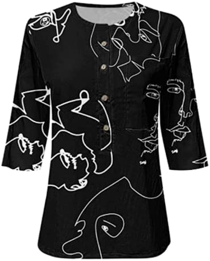 Womens Tops Summer Floral Printed Tee Shirt Button Neckline 3/4 Sleeve
